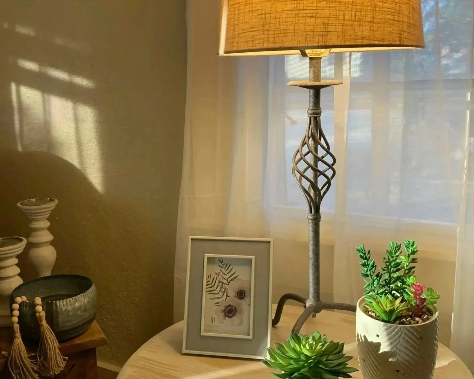 Add a small lamp or sconce instead of relying on overhead bulbs.
